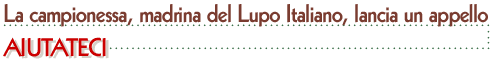 Quale madrina del Lupo Italiano, lancio un appello ai mass media affinché mobilitino, con iniziative di immediata attuazione, tutte le persone sensibili ai veri valori di solidarietà, all'amore per la natura e per gli animali, che costituiscono tanta parte dell'opinione pubblica allo scopo di evitare che questa così importante e irripetibile realtà del nostro Paese, venga, per i ritardi della burocrazia, distrutta per sempre.